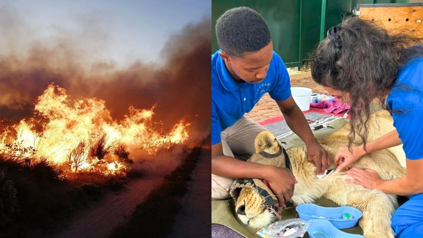Since last week, we have been appealing for your help in supporting our partner sanctuary, Panthera Africa Big Cat Sanctuary in South Africa, which has been devastated by terrible wildfires. Tragically, one precious life was lost – a tiger named Rays, who succumbed to smoke inhalation – and two other big cats have suffered severe burns to their paws. The surviving animals badly need your help, and here is what you can do. 25 wild animals rescued from the fire now need critical help. Please, help us rush them aid. Already rescued from severe abuse, this lion now suffers burn injuries from the wildfire, adding new trauma to animals who have endured so much. Credit: Panthera Africa Big Cat Sanctuary As the wildfire rages around them, rescuers work to save lions, tigers, and other wild cats from the flames. Credit: Panthera Africa Big Cat Sanctuary All 25 of our partner’s surviving animals, including lions, tigers, leopards and caracals, have now been evacuated. However, many need close monitoring and round-the-clock care. As the days pass, their wounds are becoming more visible. It is fairly common for the full extent of burn injuries to show up later in animals. Injured cats have also been licking painful areas, which is a natural, instinctual response, but it can make healing more difficult. All this means the animals need ongoing, intensive treatment to heal their wounds and keep their pain under control. The full extent of the damage to our partner’s sanctuary is not yet known, but it is already clear that it has suffered extensive structural losses, with several enclosures and essential facilities destroyed. The most urgent need right now is funding for critical, ongoing veterinary care to keep all surviving 25 animals alive. Our partner is committed to providing day-and-night veterinary care to the animals. Critical cases, like lioness Baguira and tiger Arabella, are receiving intensive care by a specialist big-cat vet. Continuous veterinary care is being provided to assess and treat each animal. Critical cases are under the close supervision of a specialist big-cat vet. Credit: Panthera Africa Big Cat Sanctuary Round-the-clock veterinary support is in place to treat and evaluate every animal, with those in critical condition being monitored closely. Credit: Panthera Africa Big Cat Sanctuary Right now, funds are still urgently needed to cover the immense costs of veterinary treatment and emergency for care injured, stressed and highly traumatized animals. As for the rebuilding of this vital sanctuary, when it is safe to do so, our partner will assess the extent of the damage and the repairs required. With our donors’ support, we will do everything we can to assist. “If you pray, please pray.” – Lizaene Cornwall, co-founder Panthera Africa It has been a devastating few days for our partner, which works to save big cats from horrifically cruel conditions. Animals like Gabriel, a magnificent leopard rescued from South Africa’s brutal breeding industry. As a tiny cub, no more than five months old, both of Gabriel’s front legs were broken. For years, he was used for breeding purposes until ultimately the facility was shut down and he was rescued by our partner. Our supporters helped fund his relocation. Gabriel has known trauma before: broken legs as a cub, years in captivity, then finally rescue. Now flames have consumed the sanctuary that was meant to be his refuge. Credit: Panthera Africa Big Cat Sanctuary Every one of our partner’s animals bears the physical, psychological and emotional scars of a life of cruelty and suffering. At Panthera, each has finally found freedom and peace – until the fire, which raged so fast and vicious, it is a miracle almost every animal survived. We MUST keep them alive. It is at times like this that we rely most heavily on supporters like you. Today, we are asking you to open your hearts to these precious animals and donate any amount you possibly can. The animals will be eternally grateful for your compassion.